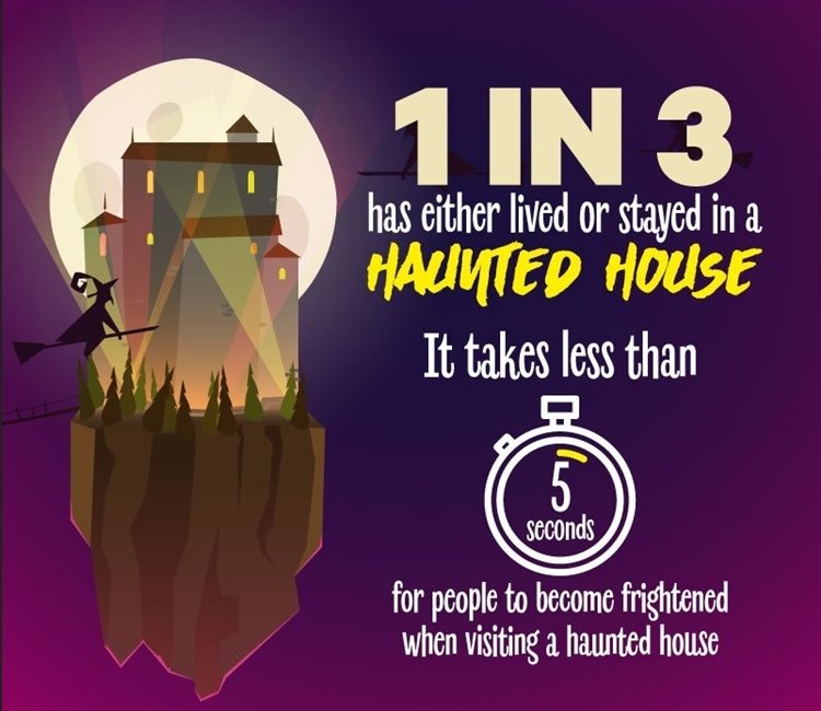 The survey also found people who like a good scare will seek to visit a haunted house, especially during the month of October. And people become frightened in less than five seconds at these attractions.